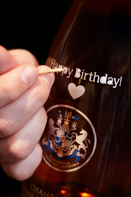 We offer engraving for any occasions on bottle, glassware, gift box and more! Contact us for more information!